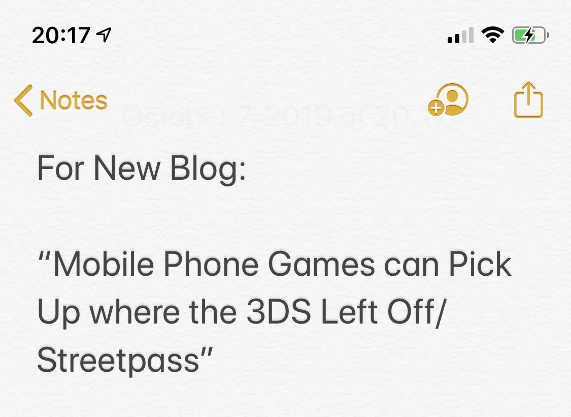 I have stuff like this written in my notes app all the time, but I think it’s true! “The World Ends With You” creates by SquareEnix boasted communicative gameplay to upgrade your player characters arsenal and the Nintendo 3DS found a lifetime of success with its populate street pass feature. I even discovered an active gaming community for the Nintendo 3DS, IN BOSTON (surprise surprise) that was named after the feature, now called “Switchpass and Play” due to the release of the Nintendo Switch.
