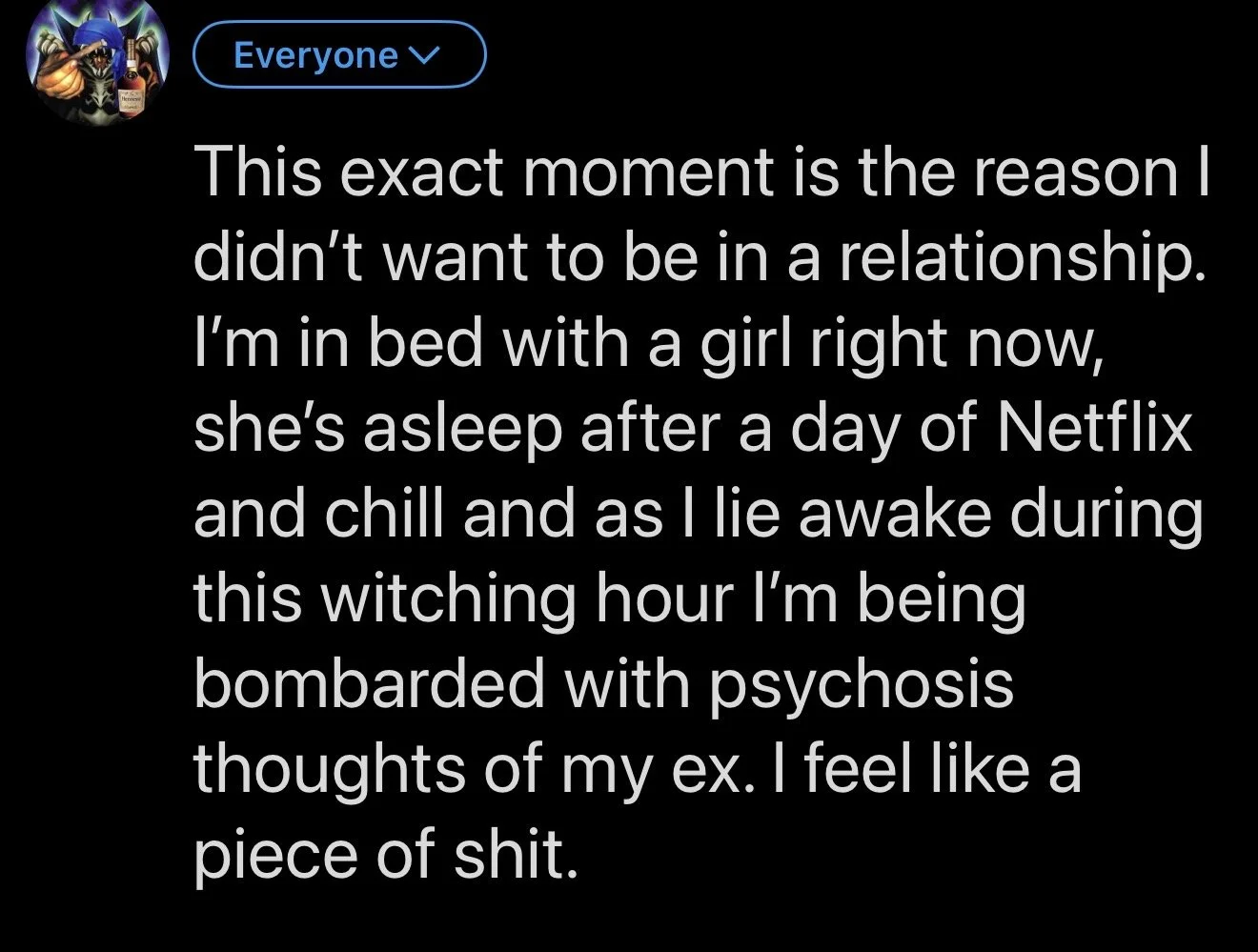Don’t know how true any of that is but, had to put it down on the page so I don’t feel like shit on the way home from work.